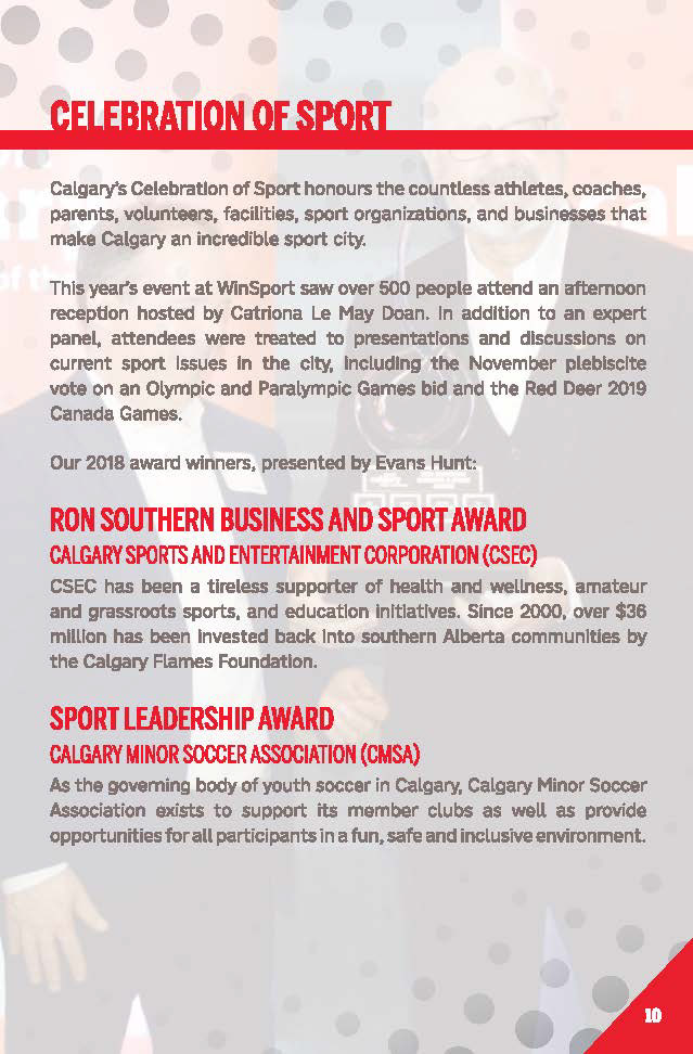 In the 2018 edition, I made the background grey instead of red as it was professional messaging from the Sport Calgary leadership (that being the Chair and CEO respectively).