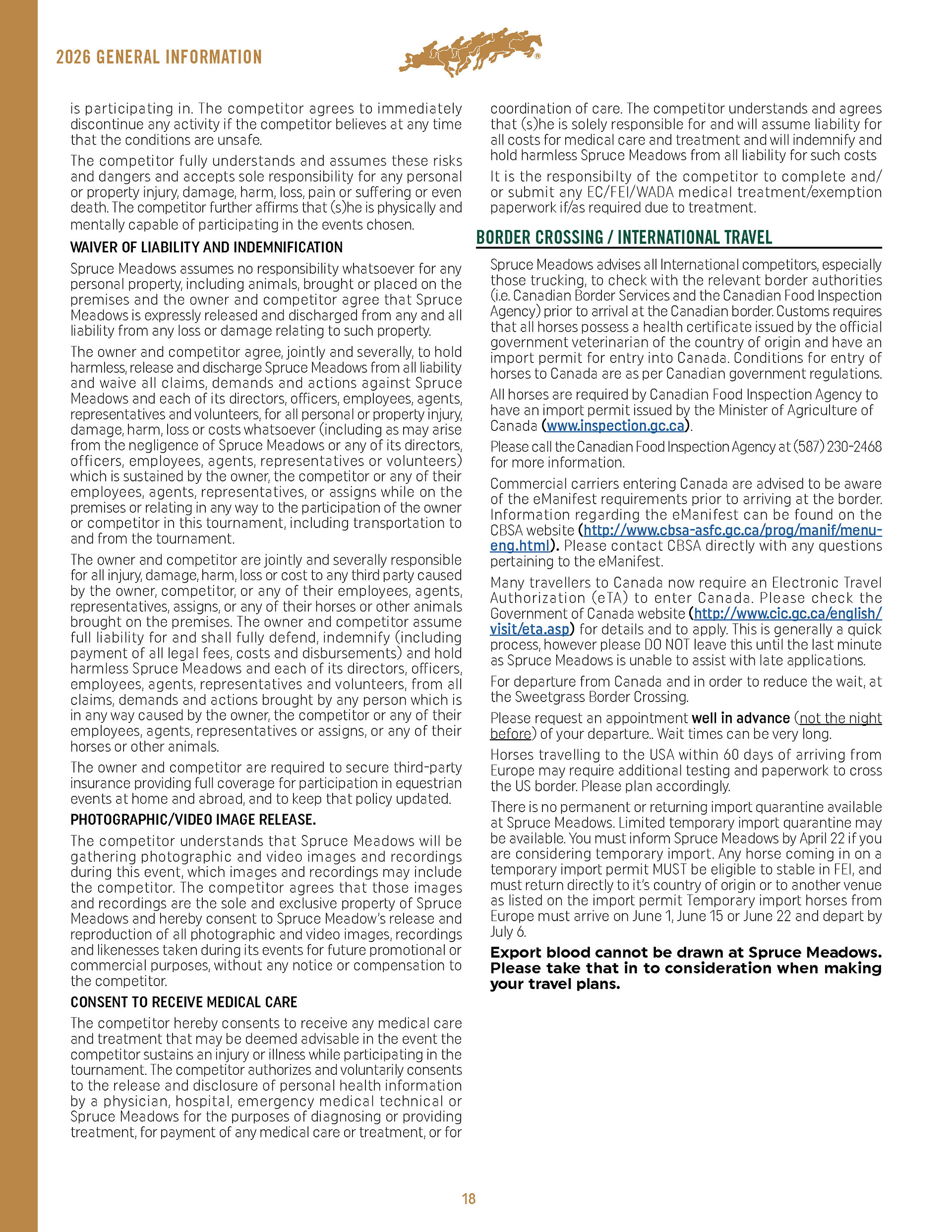 It functions as a contract between exhibitors and Spruce Meadows' show jumping tournament office, often requiring approval from national and international federations, like Equestrian Canada and FEI. It is also a part of some contractual obligations for some of Spruce Meadows' partners.