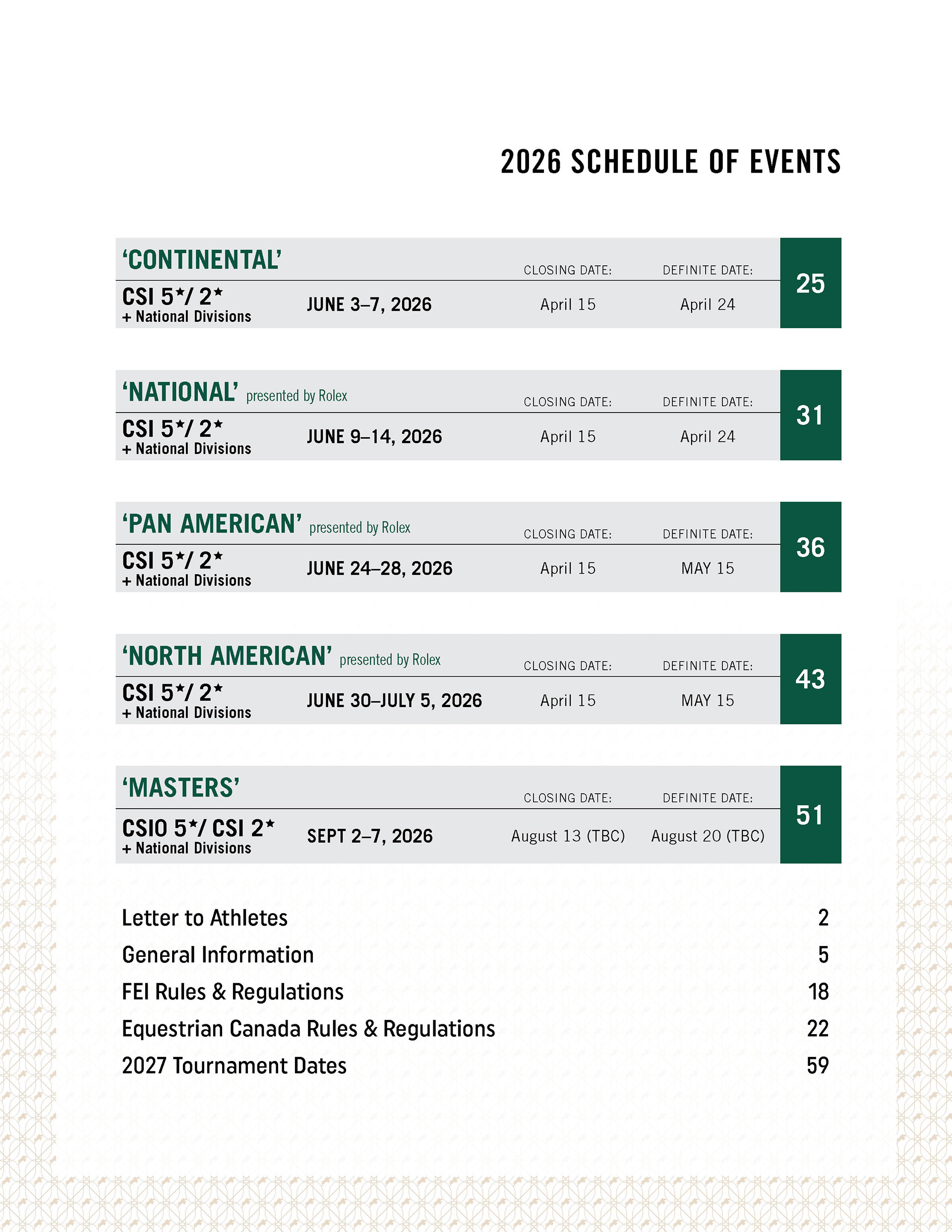Cover Image of Spruce Meadows 2026 Prize List Document (total of 60 pages)